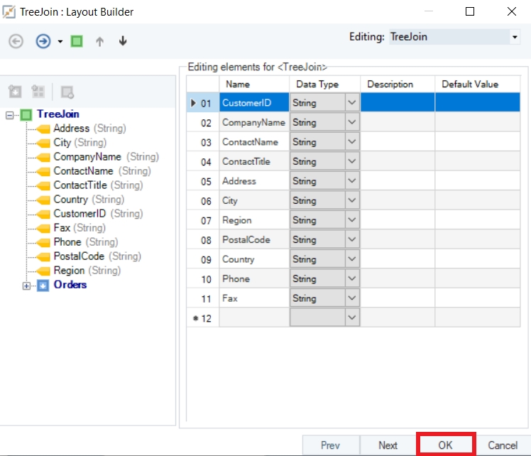 11. We have our layout and the TreeJoin properties ready, click OK.