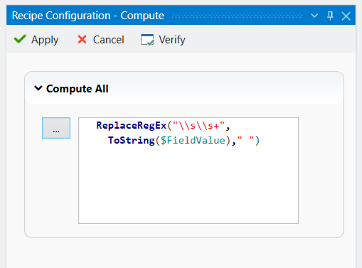 Click OK and the expression will appear in the Recipe Configuration – Compute panel.