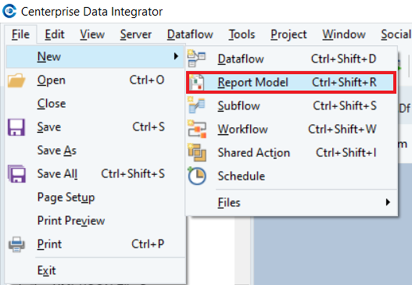 To open a Report Model, go to the menu bar and select *File > New > Report Model*.