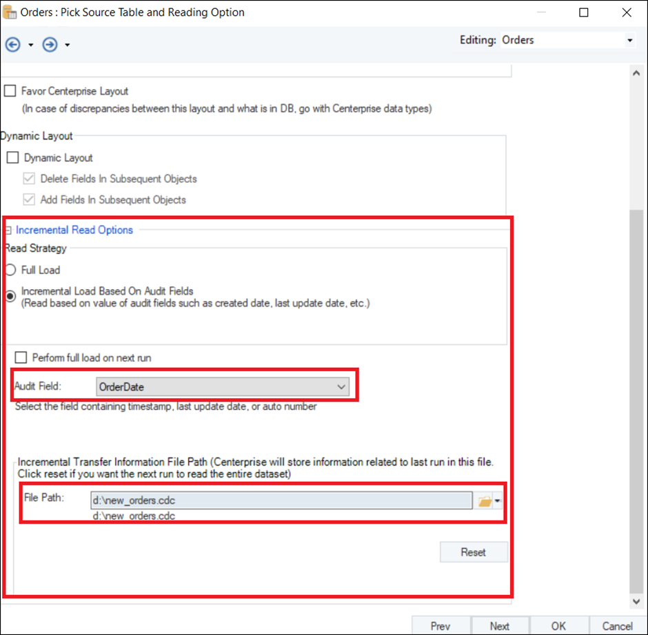 During a full load, the entire data is processed on each run whereas during an incremental load, an *Audit Field,* is specified on the basis of which, the Database source reads the incremented data only. The Incremental and full load options can be found in the properties of the *Database Source* object. For more information on full and incremental loading options, click [here](https://documentation.astera.com/dataflows/sources/database-table-source).