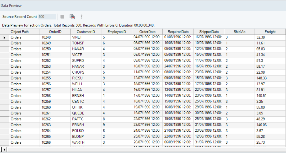 Right-click on the function transformation object and select *Preview Output.* In the output, you can see that each date from the *OrderDate* field has been separated in the different date components.