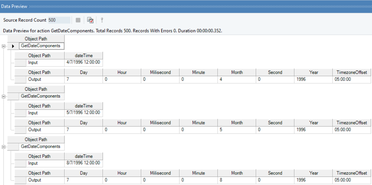 **Note:** The *GetDateComponents (DateTimeWithOffset dateTime)* function differs from the *GetDateComponents(Date dateTime)* function as it includes a Timezone Offset value. The Offset value is the number of hours or minutes a time zone is ahead of or behind GMT (Greenwich Mean Time).