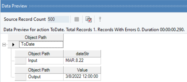 In this example, we are passing a date time value in a format NOT present in the acceptable date time formats list in Astera Data Stack, to the function transformation object using a Variables object.