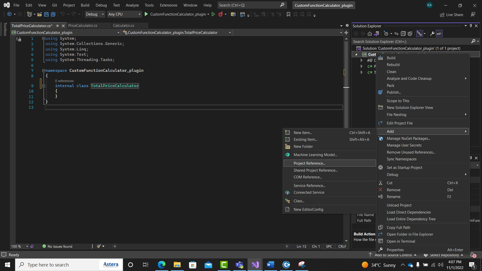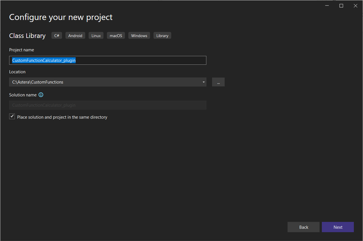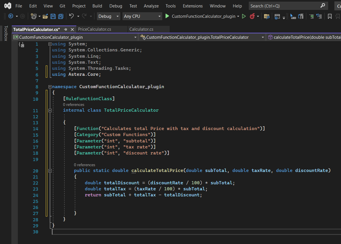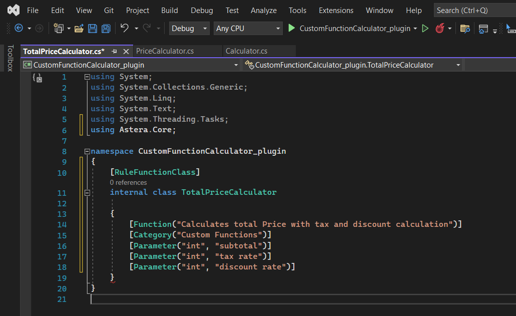 First, we will create a new .NET project in Visual Studio or any compiler which supports the .NET framework. We will name our project CustomFunctionCalculator_plugin.