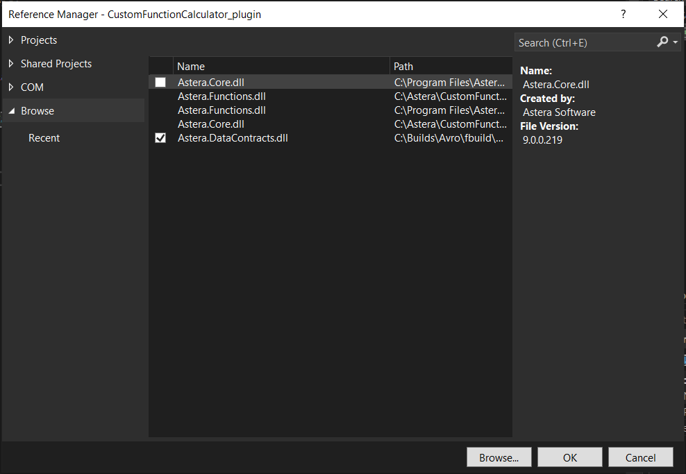The only .dll file which we need to reference here is the Astera.DataContracts.dll. This can be found in Astera Data Stack’s Server installation folder.