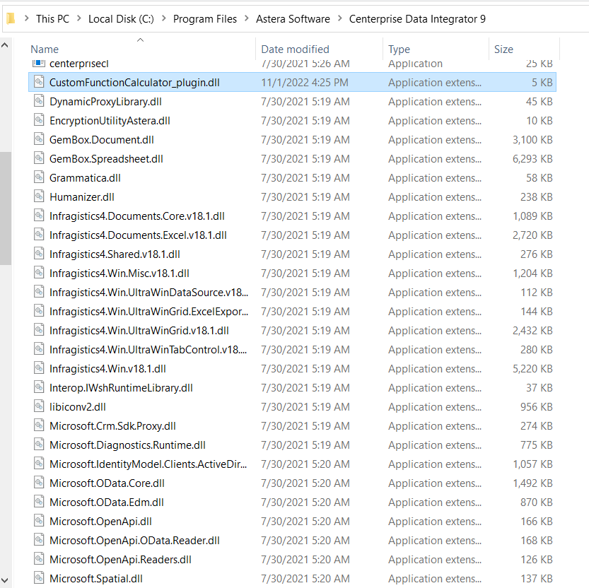Note: Astera Data Stack will only load assemblies with output assemblies suffixed plugin.