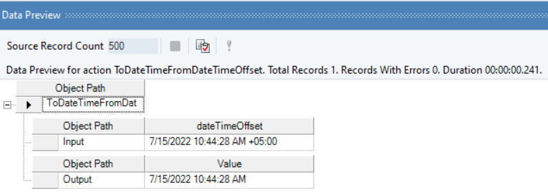 In the output window, you can see that the provided date time offset value has been converted to a date time value.