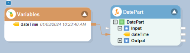 In this example, we will pass a date-time offset value to the function transformation object using a *Variables* object.