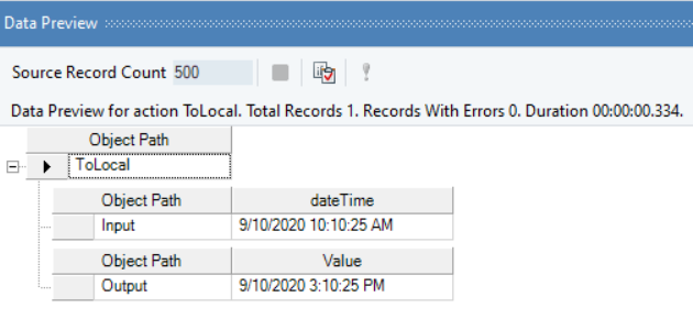 In the output window, you can see that the provided UTC date time value has been converted into a local date time value.
