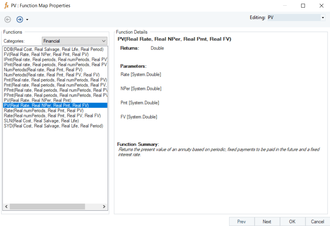 Right-click on the function transformation object and select Preview Output. You can see that Astera Data Stack has applied the PV function, and returned the present value, taking into account the specified Future Value.