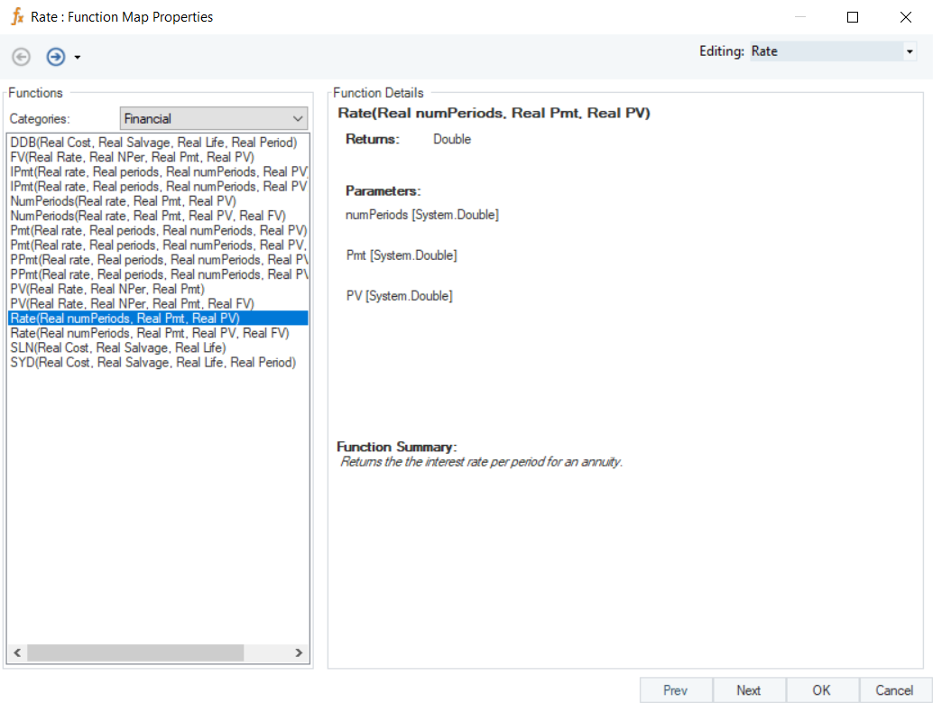 Rate (Real numPeriods, Real Pmt, Real PV)