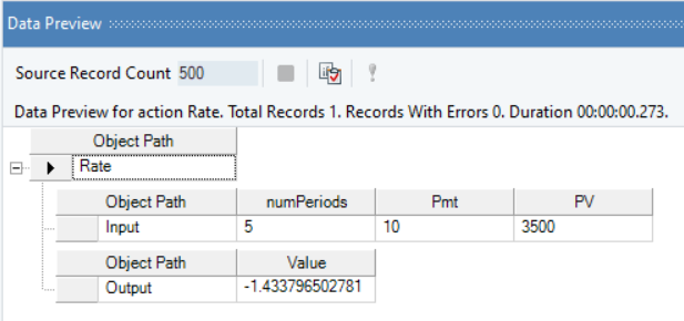 Right-click on the function transformation object and select Preview Output. You can see that Astera Data Stack has applied the Rate function, and returned the Interest rate value.