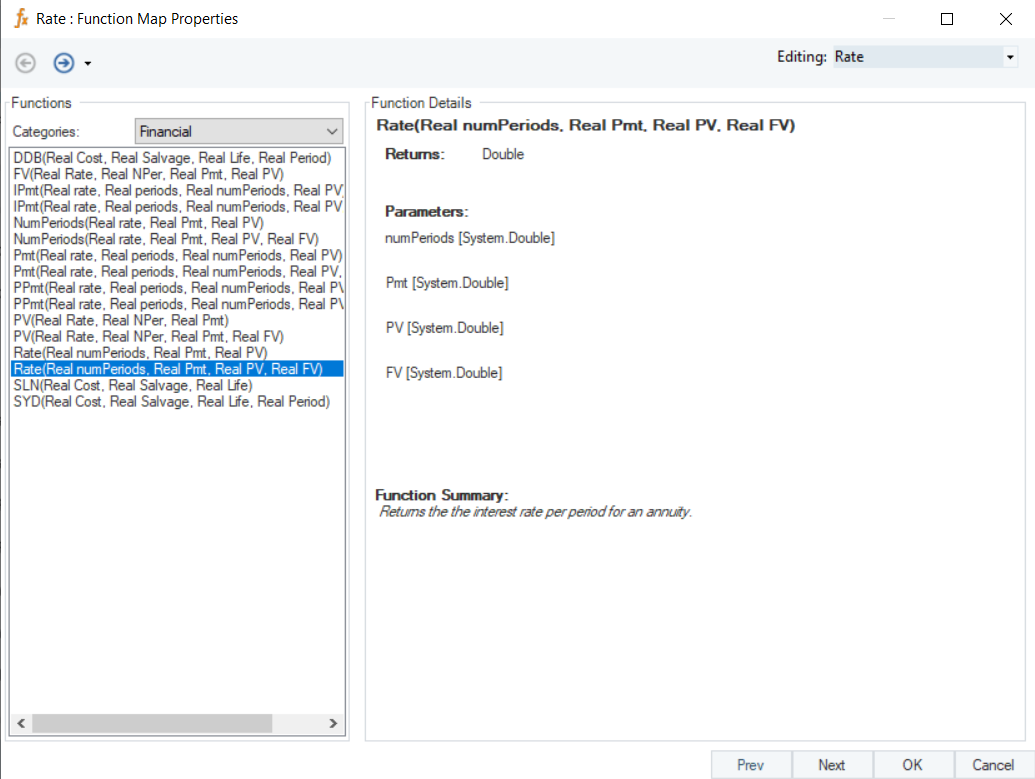 Rate (Real numPeriods, Real Pmt, Real PV, Real FV)