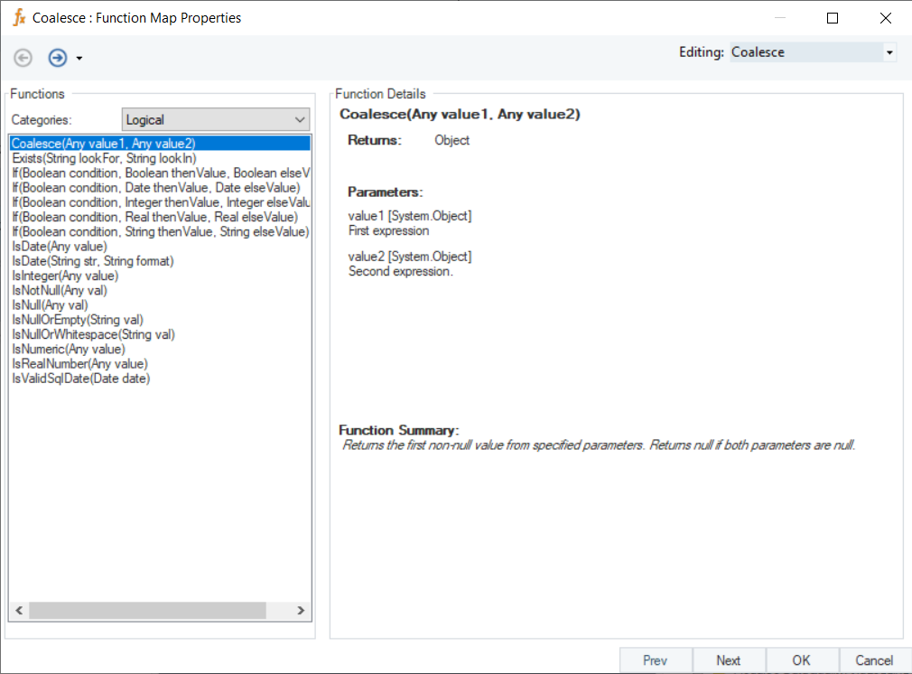 Coalesce (Any value1, Any value2)