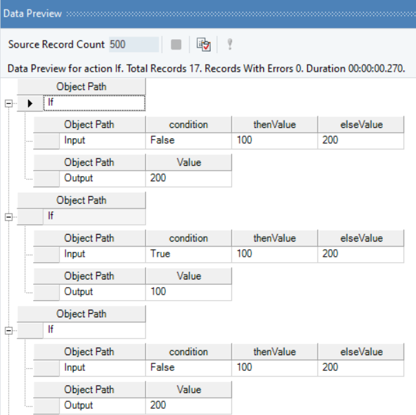 In the output, you can see that Integer values, 100 and 200, have been returned depending on whether the Items field condition was met.
