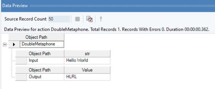 In the output window, you can see that the Double Metaphone value of the specified string has been returned.