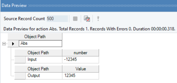 In the output window, you can see that the absolute value, 1234, has been returned for the provided number value.