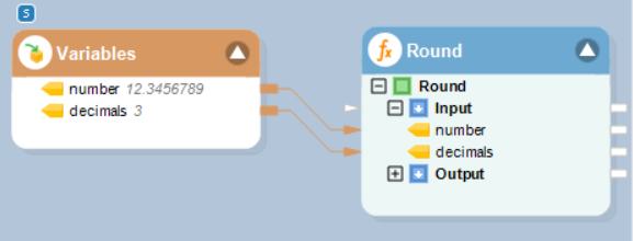 In this example, we are passing a decimal value and an integer value (to specify decimal places) to the function transformation object using a *Variables* object.