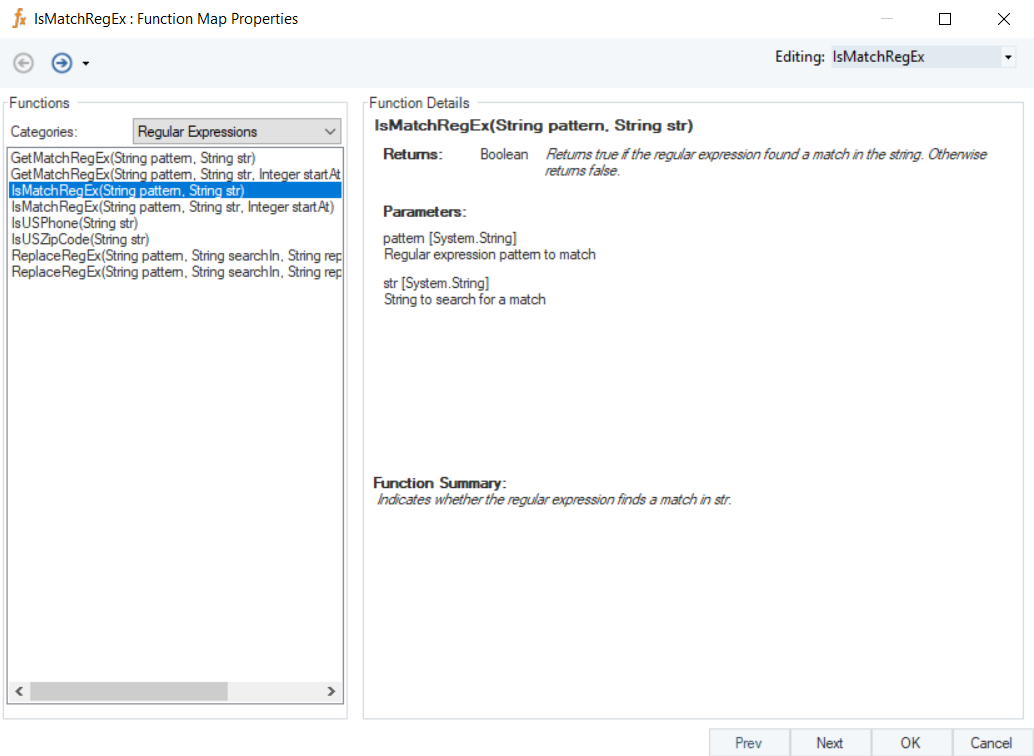 | **Name**    | ***IsMatchRegEx***                                                                                                              |