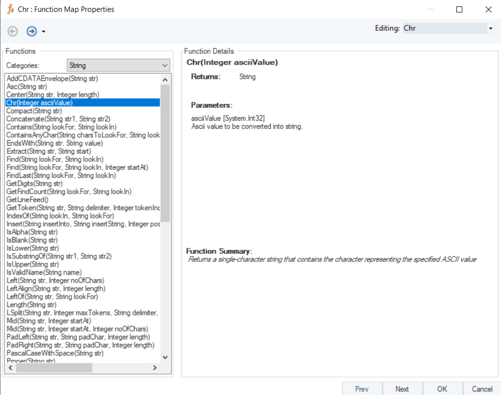 Right-click on the function transformation object and select Preview Output. You can see that Astera Data Stack has returned a string value converted from a specified ASCII value.