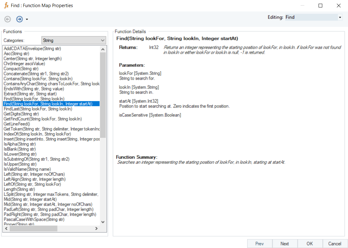 Find (String lookFor, String lookIn, Integer startAt)