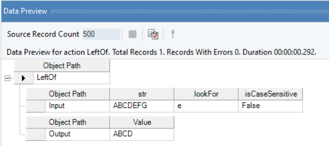 Right-click on the function transformation object and select Preview Output. You can see that Astera Data Stack has returned all the characters to the left of the specified string value.