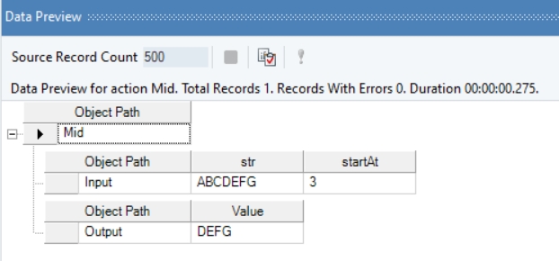 Right-click on the function transformation object and select Preview Output. You can see that Astera Data Stack has returned a string beginning from the specified startAt position.