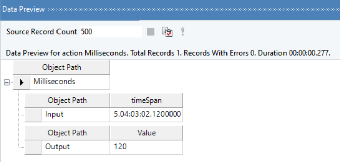 In the output window, you can see that the provided value’s Milliseconds component has been returned.