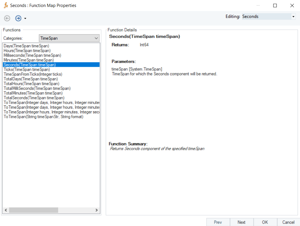 timeSpan [System.TimeSpan] – TimeSpan for which the Seconds component will be returned