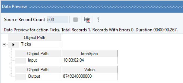 In the output window, you can see that the provided value’s number of ticks has been returned.