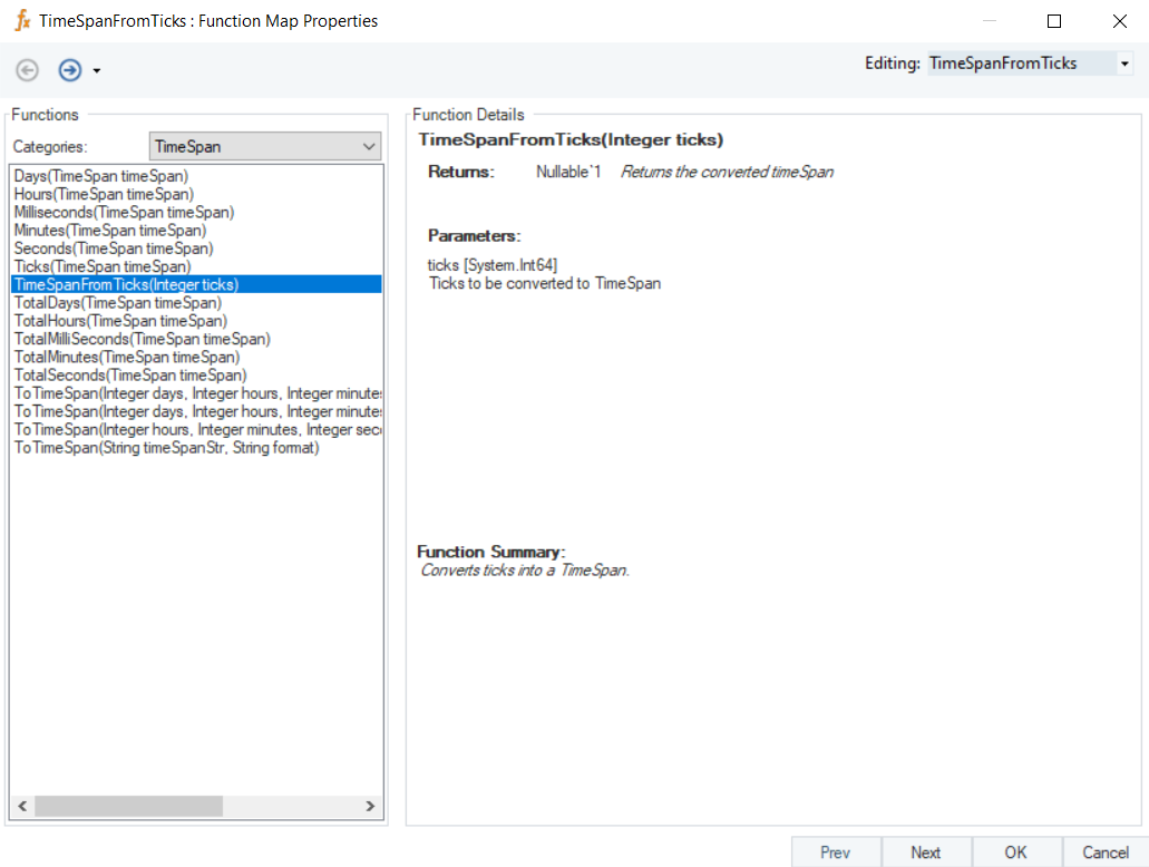 Returns the converted timeSpan using the ticks.