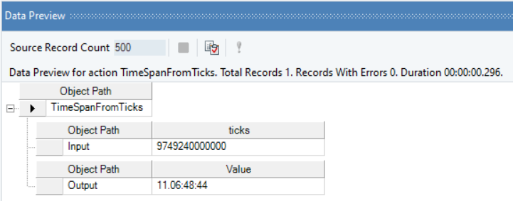 In the output window, you can see that the Integer value indicating Ticks has been converted into a TimeSpan value, present in the timespan value.