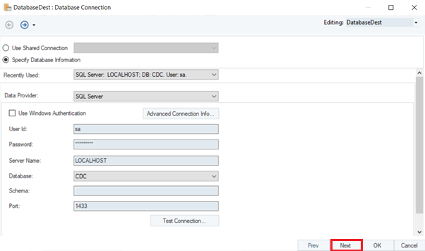 After successful connection with the database, click on Next to proceed.