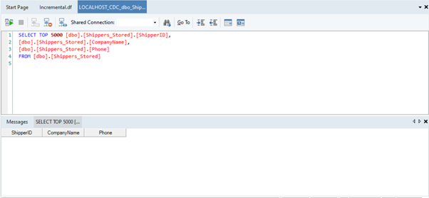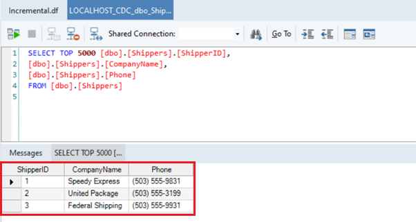 In this example, we have a database table containing the basic data of shipping companies. We want to store it in a new database table such that we can update the new table on any change in the source without having to completely load the source table again.