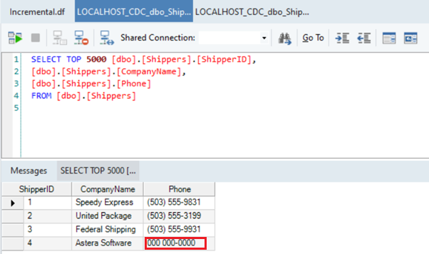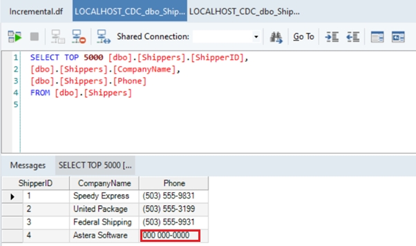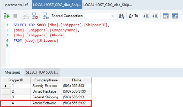 To check if the incremental CDC is working, let’s take an example where a fourth entry is inserted in the source table.