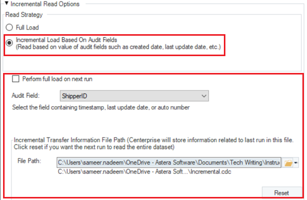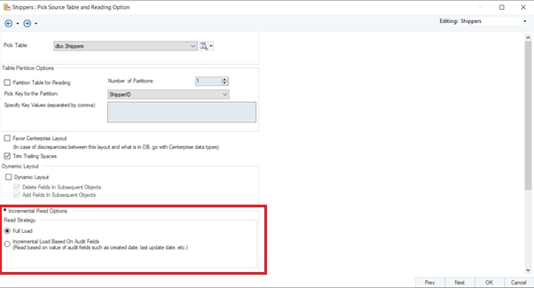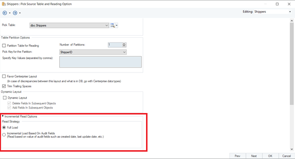 In this section, select the Read Strategy named Incremental Load Based On Audit Fields. Further options become available on this selection.