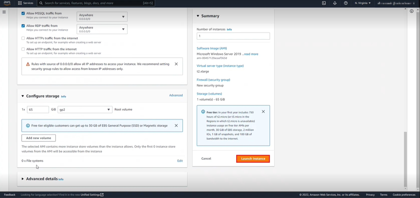 Next, you can configure the storage settings as per your requirement and launch the instance.