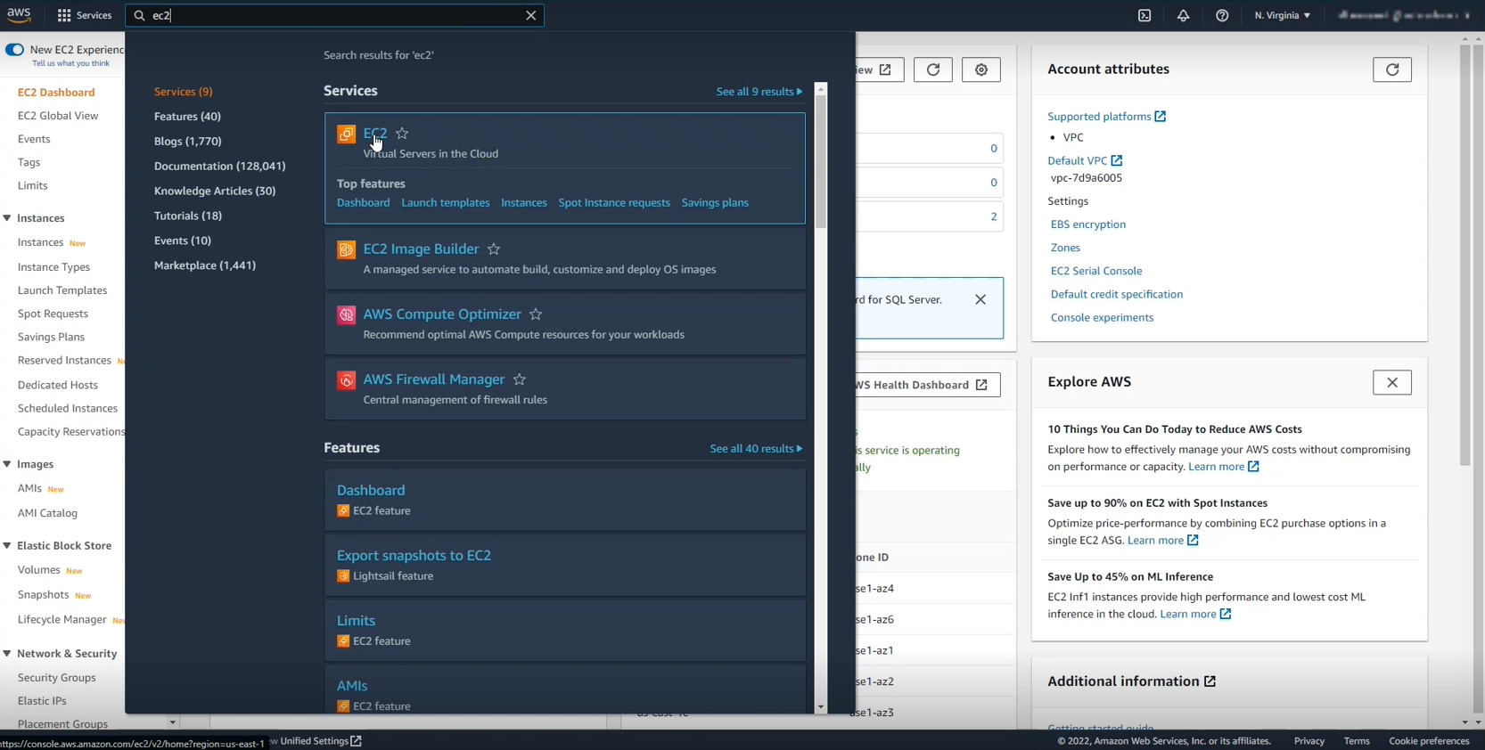 Type EC2 in the search bar to find the virtual servers in the Cloud.