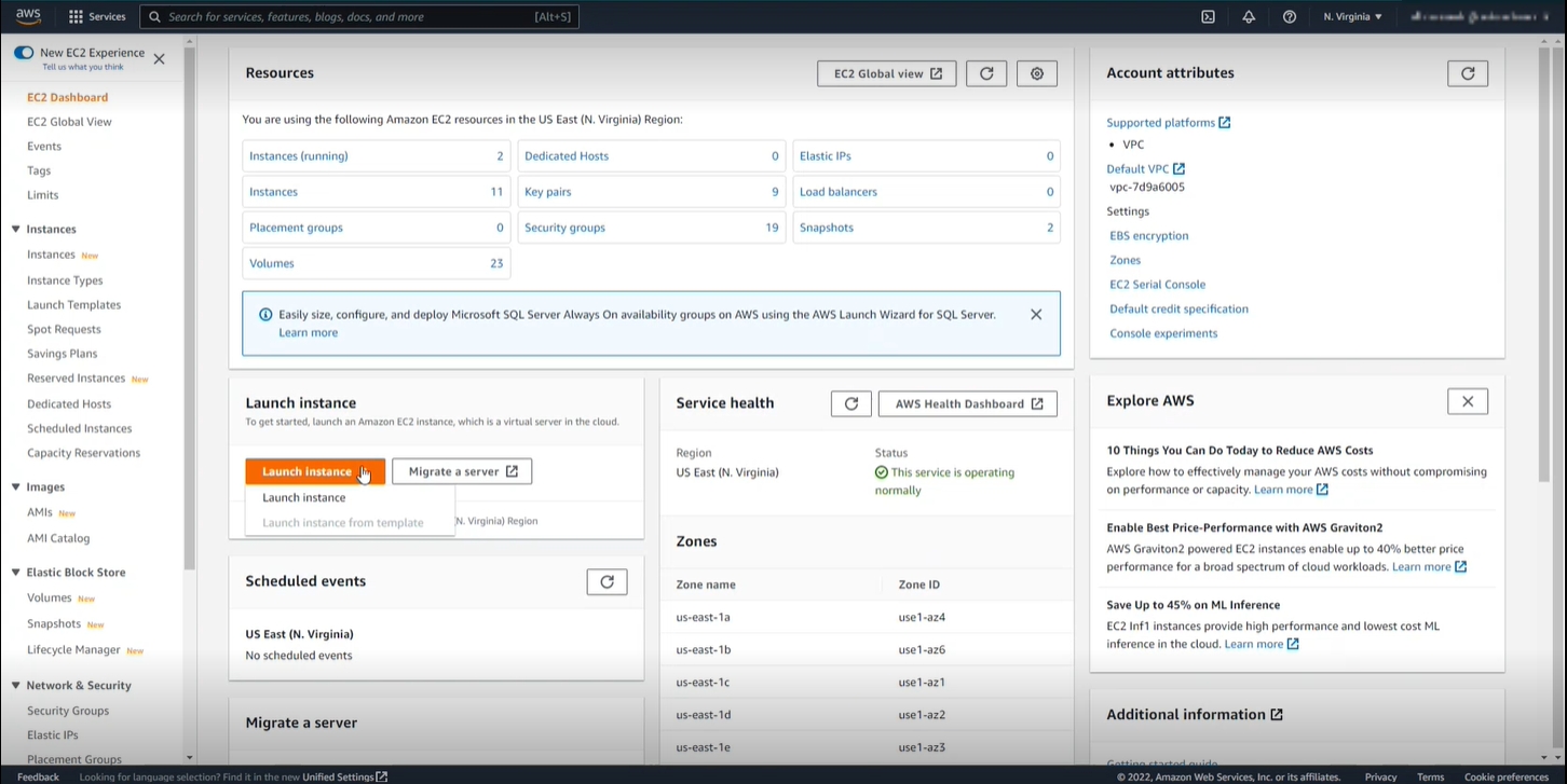 Next, click on Launch Instance button on the EC2 page.