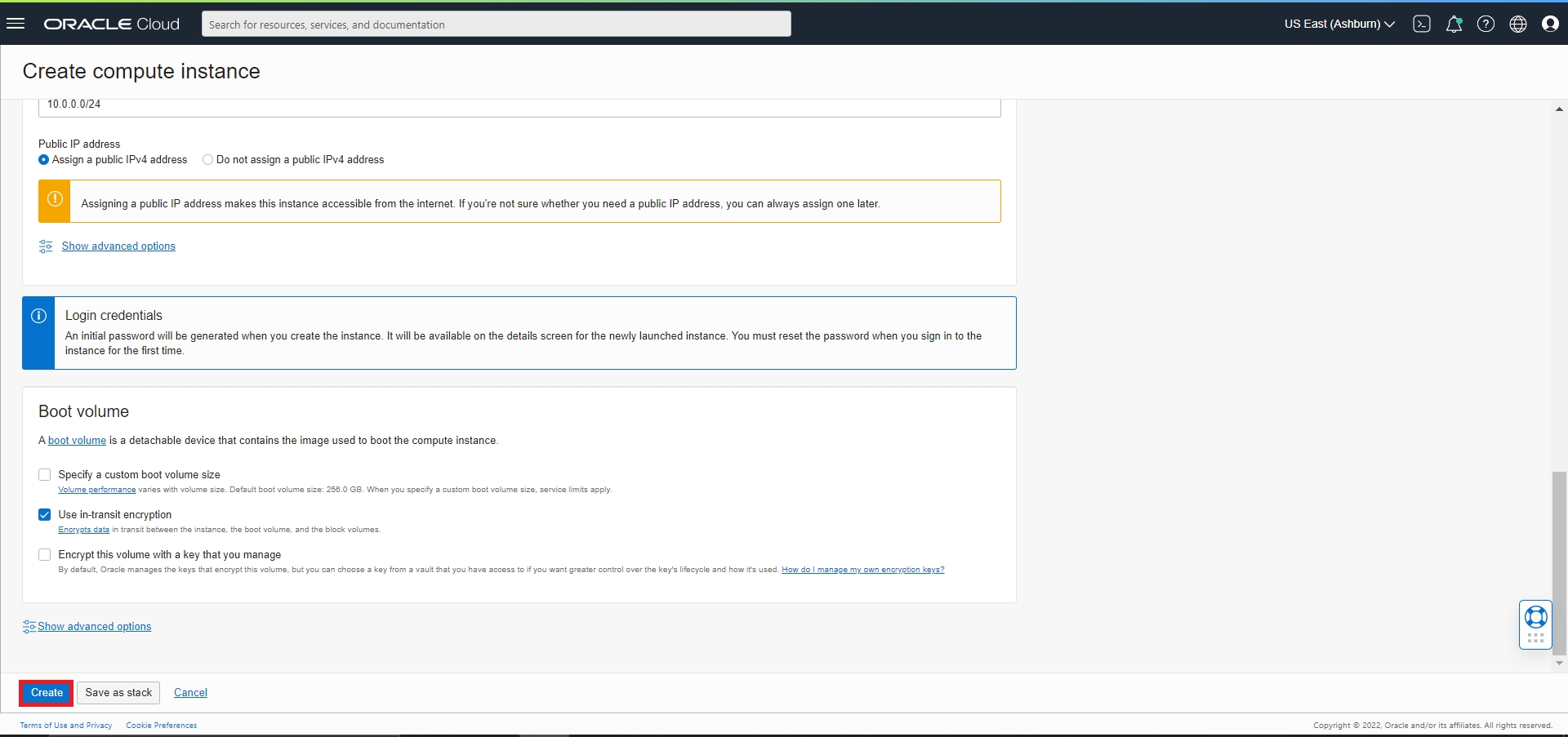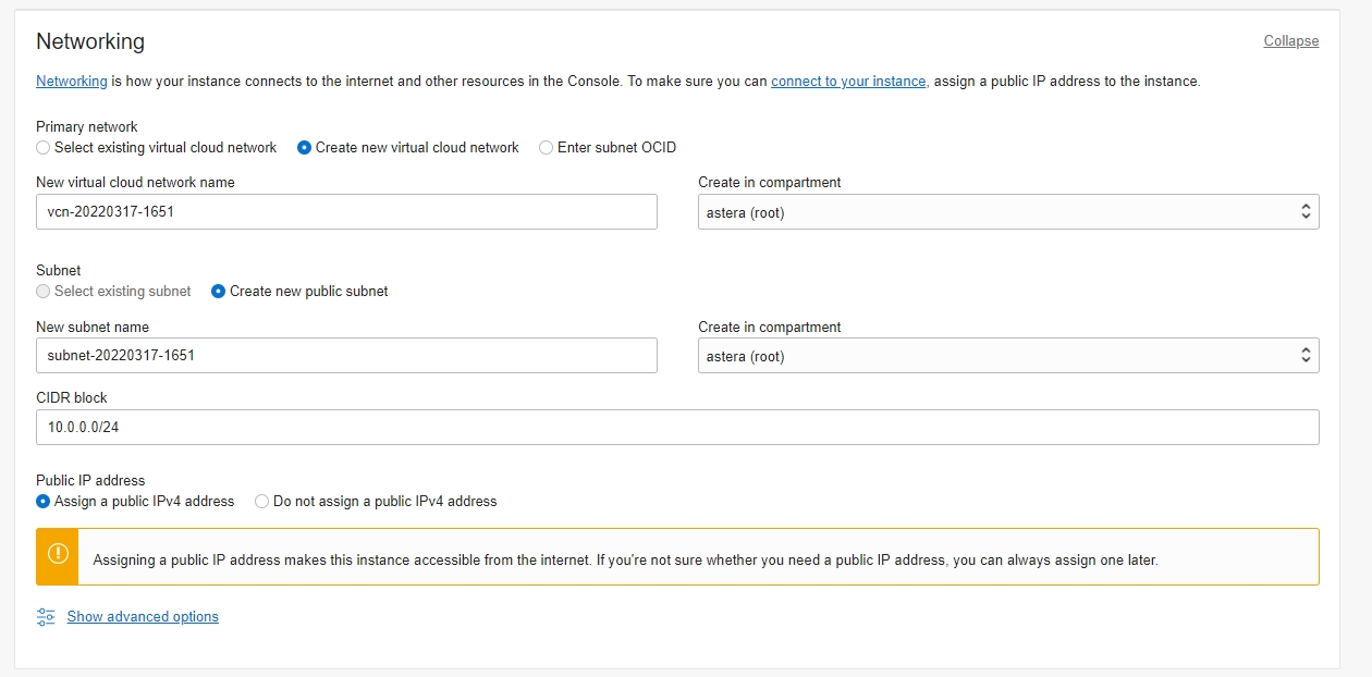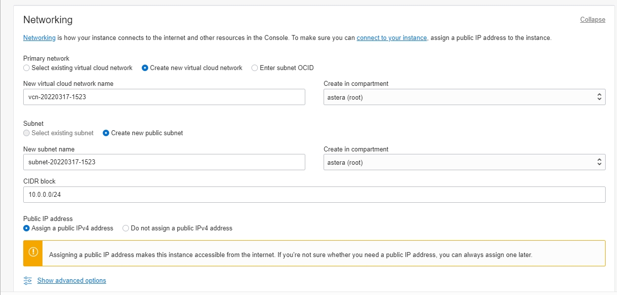 Create In Compartment: The compartment in which it is going to be created. We are using the compartment ‘astera (roots)’