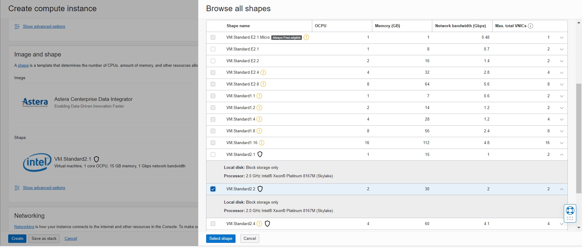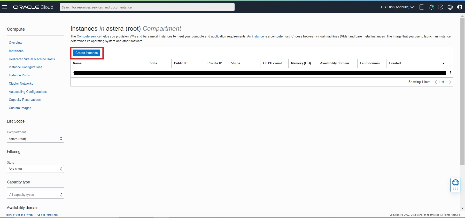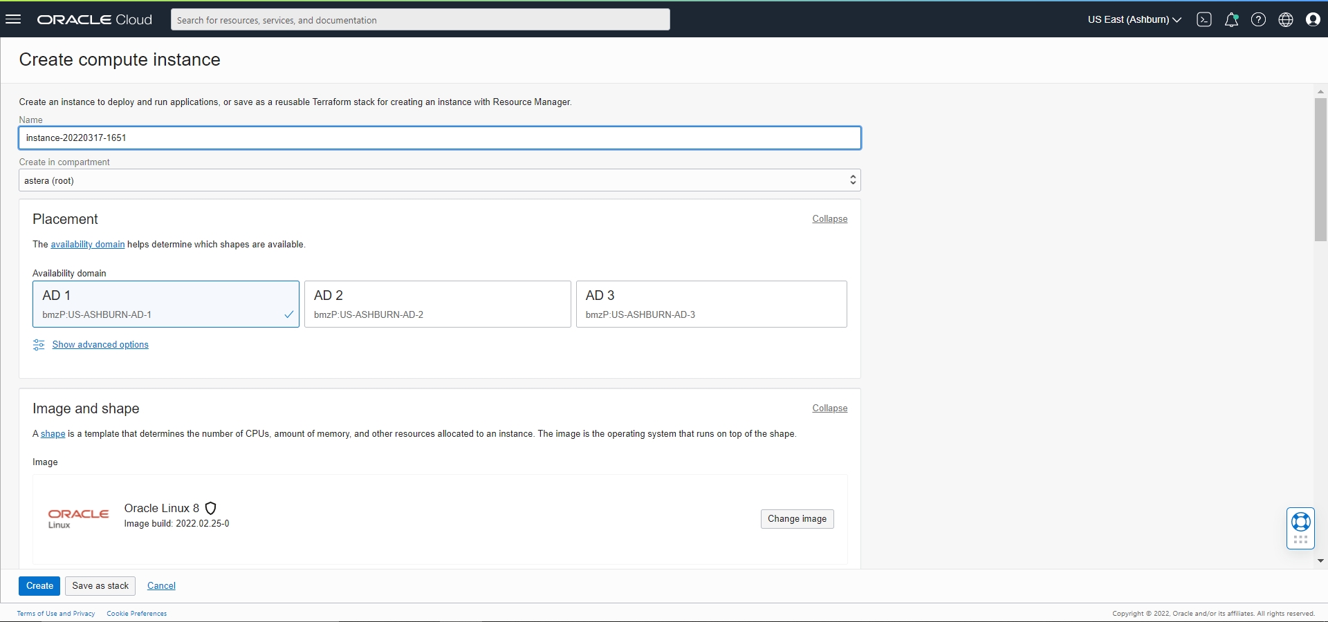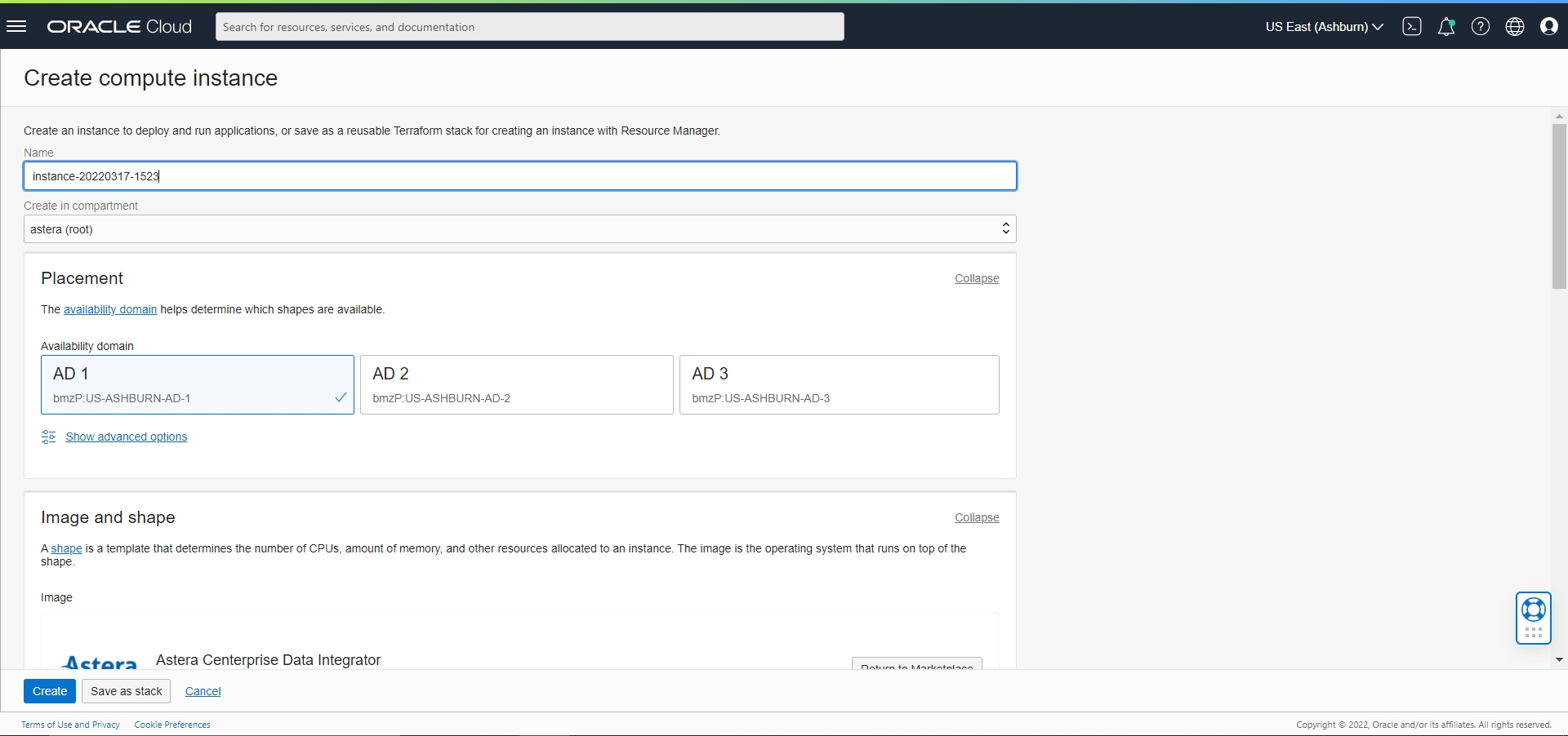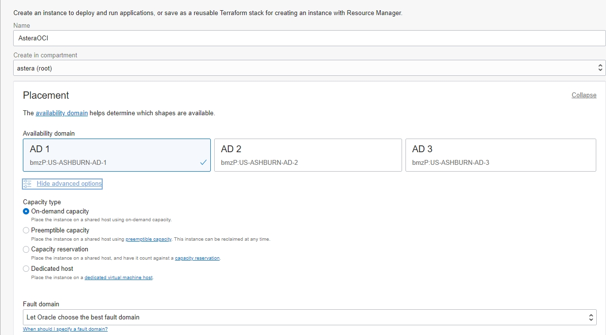 Name: Name of the instance being created. We are using the name ‘AsteraOCI’