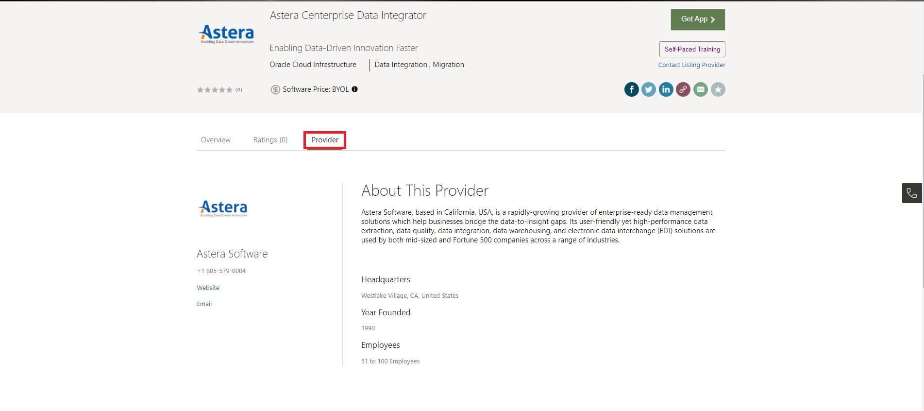 Under the Provider tab, you can see information regarding the company itself.