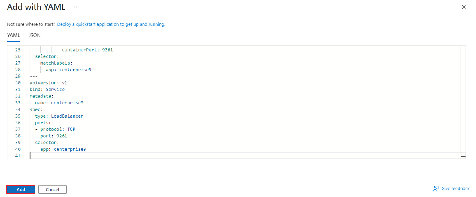Paste the earlier copied syntax from the YAML file as described below.