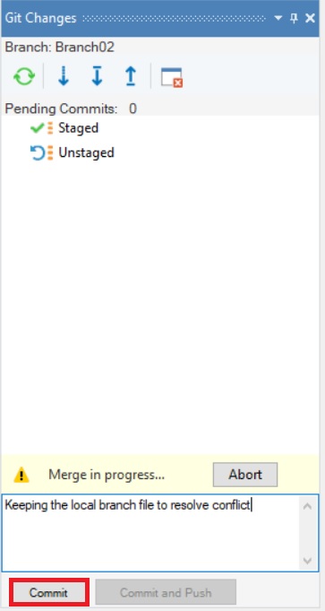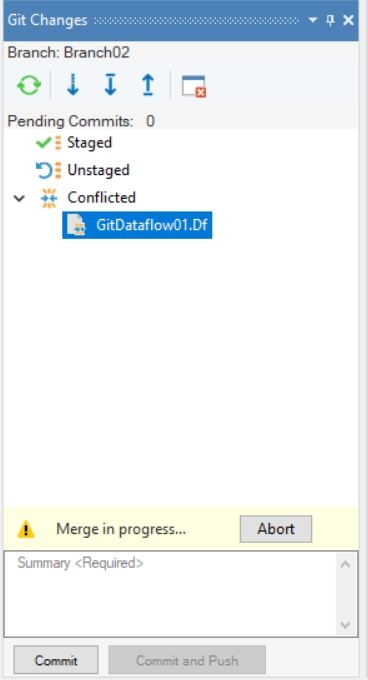 At any time during this process, you can abort the merge simply by selecting the button at the bottom of the Git Changes Browser.