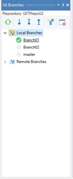 As you can see in the Git Branches Browser, we have two branches available.