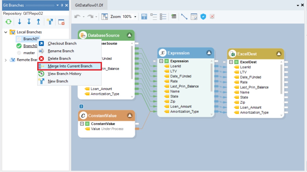 Resolving a Conflict in Git in Astera