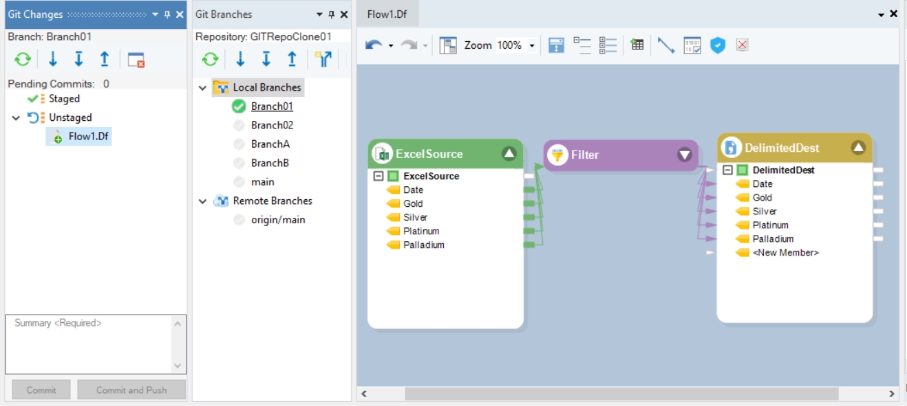 Once the flows have been staged, you can decide whether to commit or push the changes to the repository.