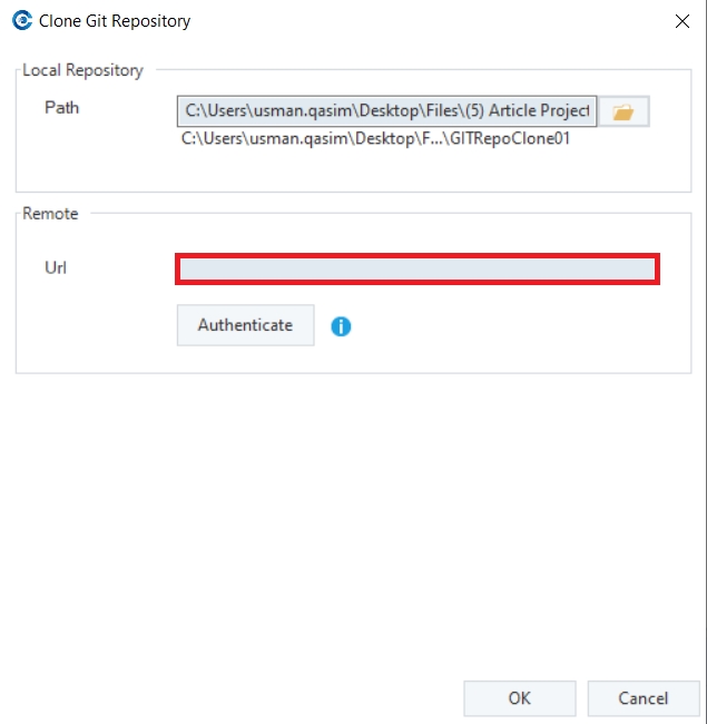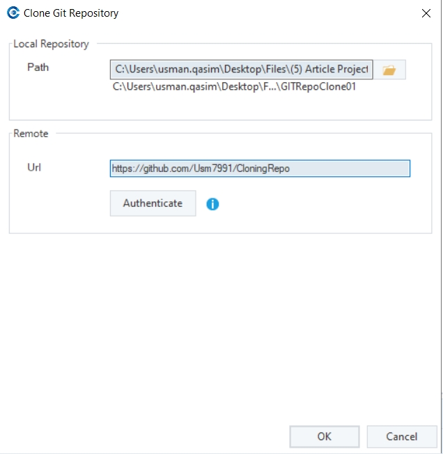 Path: This is where the user will provide the destination path of the cloned repository from the remote server.