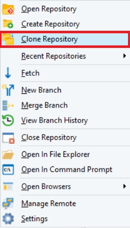 Astera Data Stack provides the user with the ability to clone a repository from a remote server.