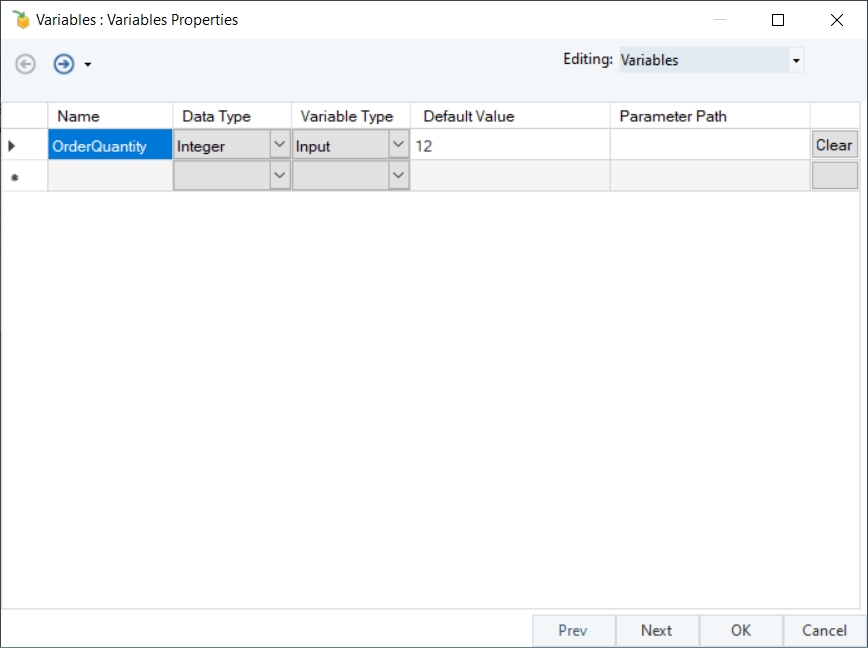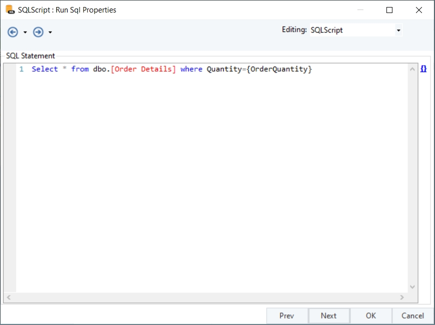 Variables can also be utilized in a Run SQL Script whilst querying data from a database table. Here, we wish to get the order details of those orders where the items ordered have a particular quantity. Instead of editing the query multiple times for different quantities, we can just use a variable.
